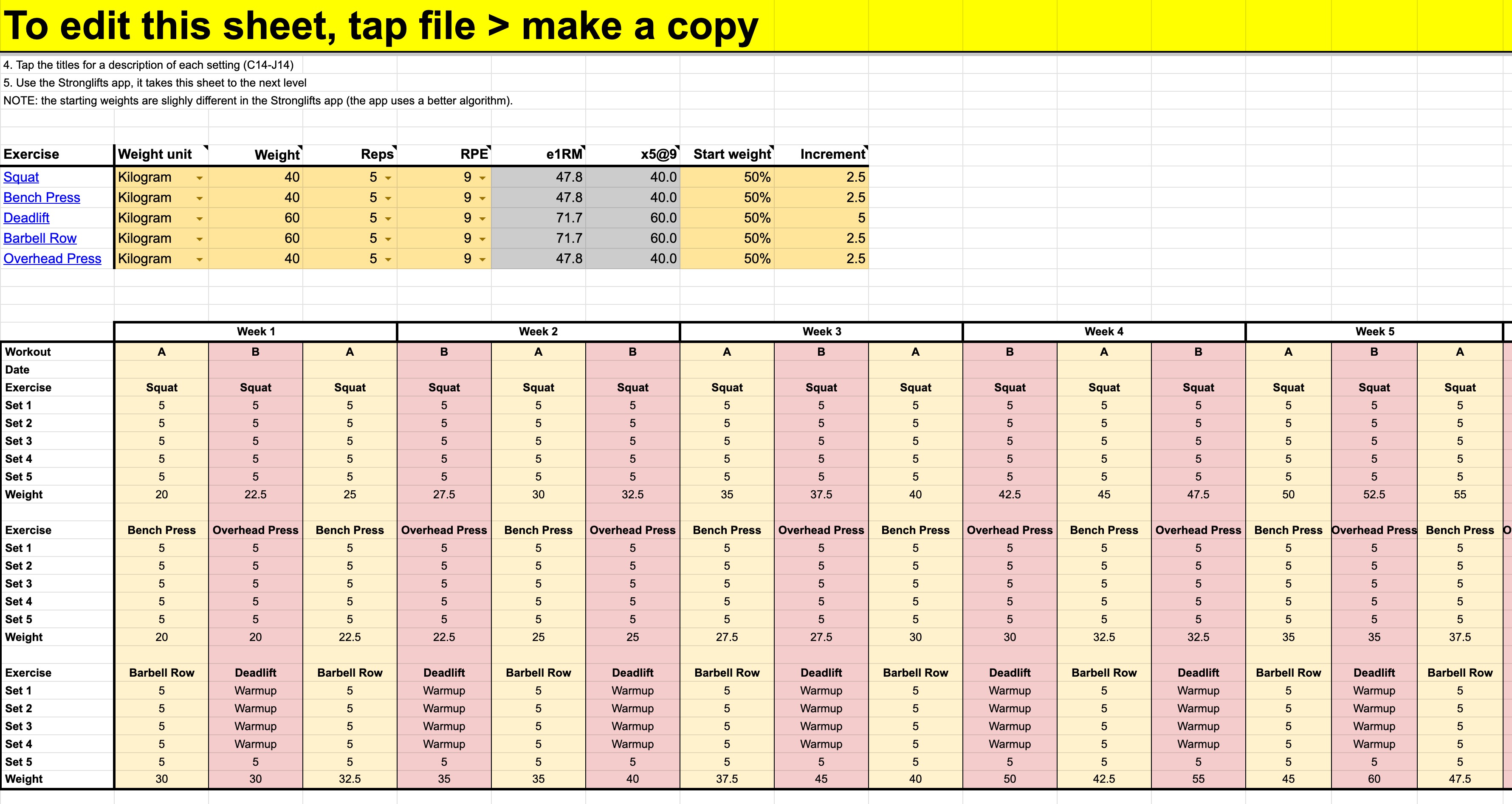 참고로 스트롱리프트 공식 홈페이지에서 본인의 운동 수행능력을 입력하면