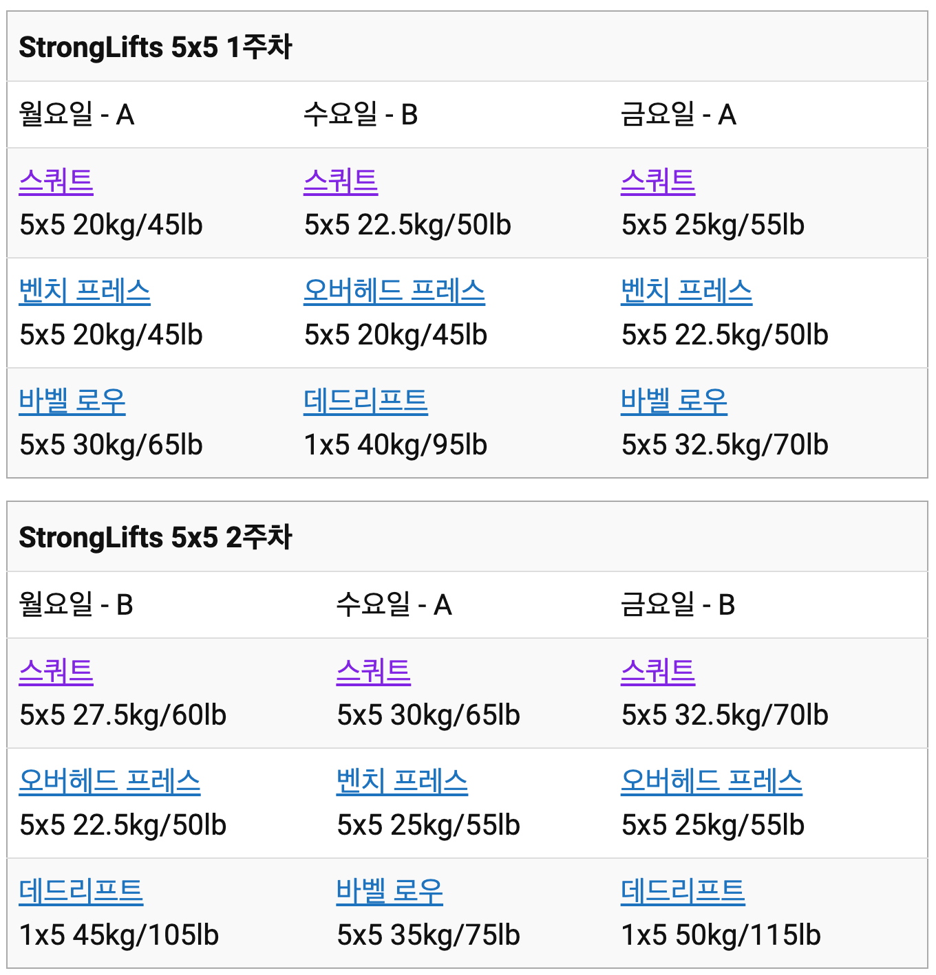 그리고 우연히 아래 영상을 보고 스트롱리프트 5x5를 선택해서 시작했다.